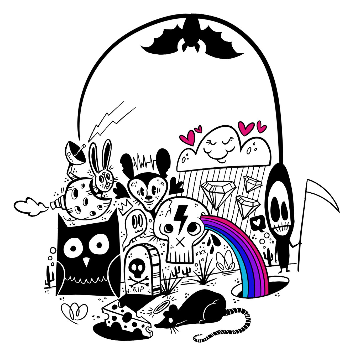 Each illustration was created using ink on paper, with color and finishing added digitally in Photoshop. The project allowed for creative experimentation while reinforcing a consistent visual voice across the series.